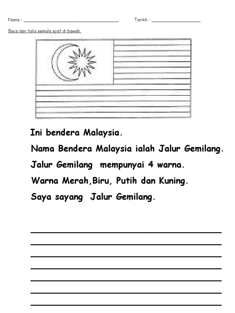 LEMBARAN KERJA BERTEMAKAN NEGARAKU. Bendera malaysia yang digunapakai sekarang ini mula diperkenalkan pada mei tahun. Lembaran kerja tuliskan jenis pakaian tradisional dan perhiasan diri mengikut kaum dan etnik kaumetnik nama pakaian.